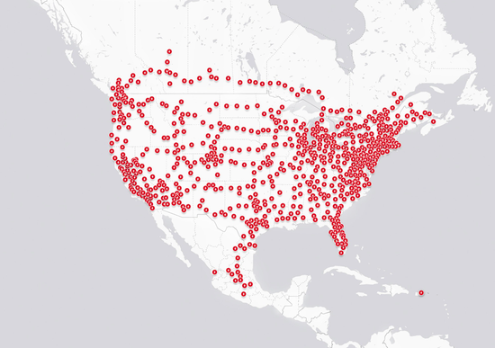 特斯拉超充站在美国的覆盖明显也存在很多漏洞