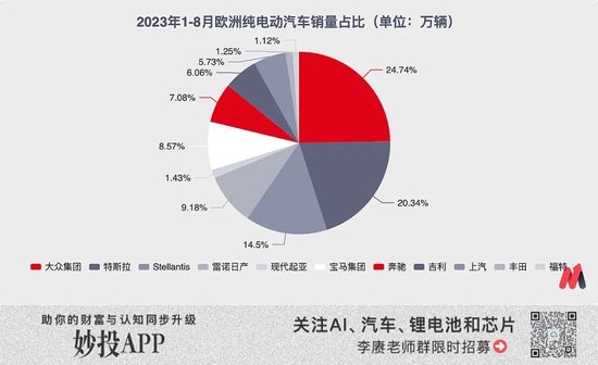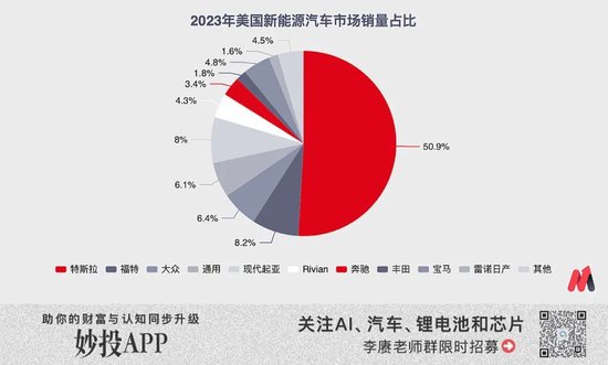 尽管特斯拉2023年在中国销售了超过60万辆车,但市场占比只有7.8%。同样差不多的销量到了美国,直接变成了整个新能源汽车市场的半壁江山,哪怕是到了众多欧洲汽车巨头的地盘,仍占了四分之一的市场空间。