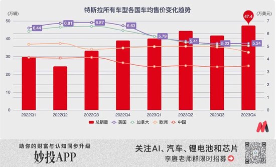 站在车均成本和售价变化角度更为明显,以2023年第四季度为例,特斯拉全球的车均成本下滑了8.3%,但是售价实际上下滑了16.3%。