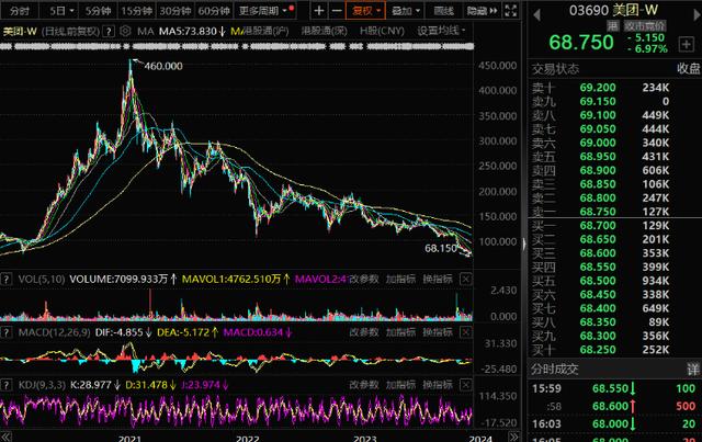 盘面上看,2023年美团股价就累计下跌了53.7%,2024年开年以来仅12个交易日内,美团股价累计下跌超15%。